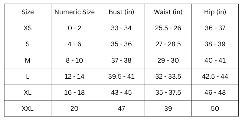 Size Chart(inches):