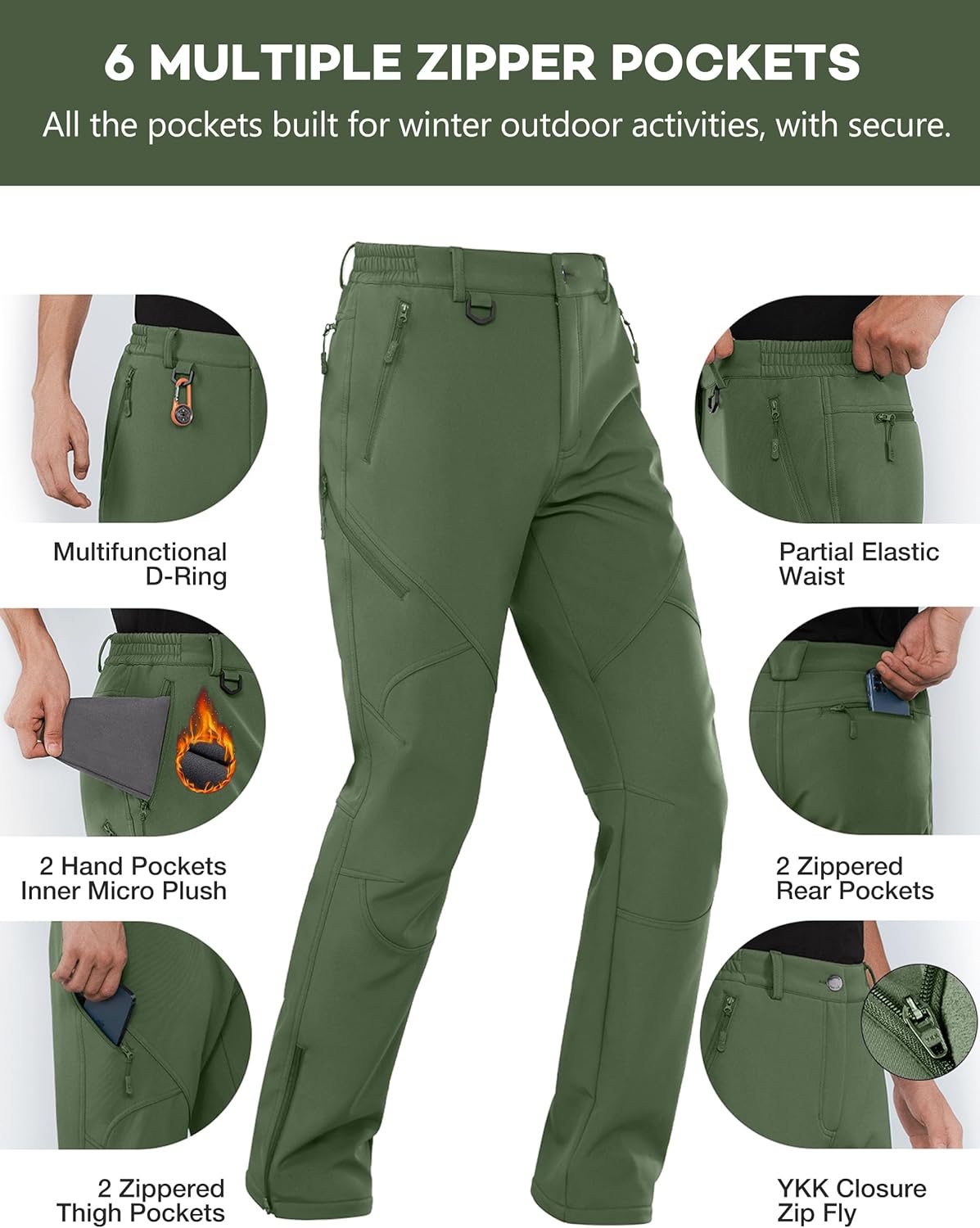 Carry gear in one of the Fleece Lined Softshell Pants For Men For Winter Hiking And Ski Trips, zip over your boots with ease, and handle winter without missing a step. These pants support winter activity from start to finish.