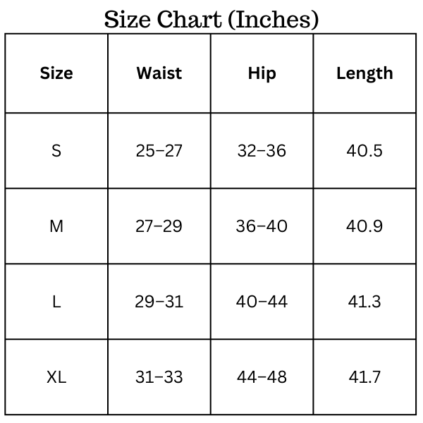 Size Chart: ( Inches )