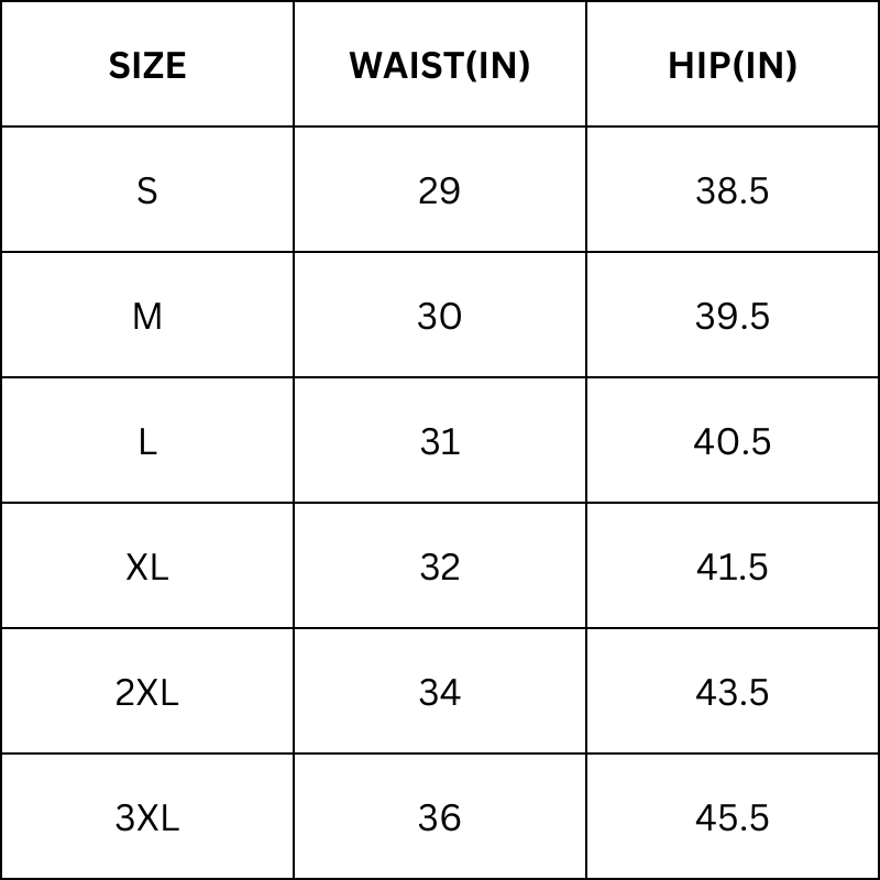 Size Chart(inches):