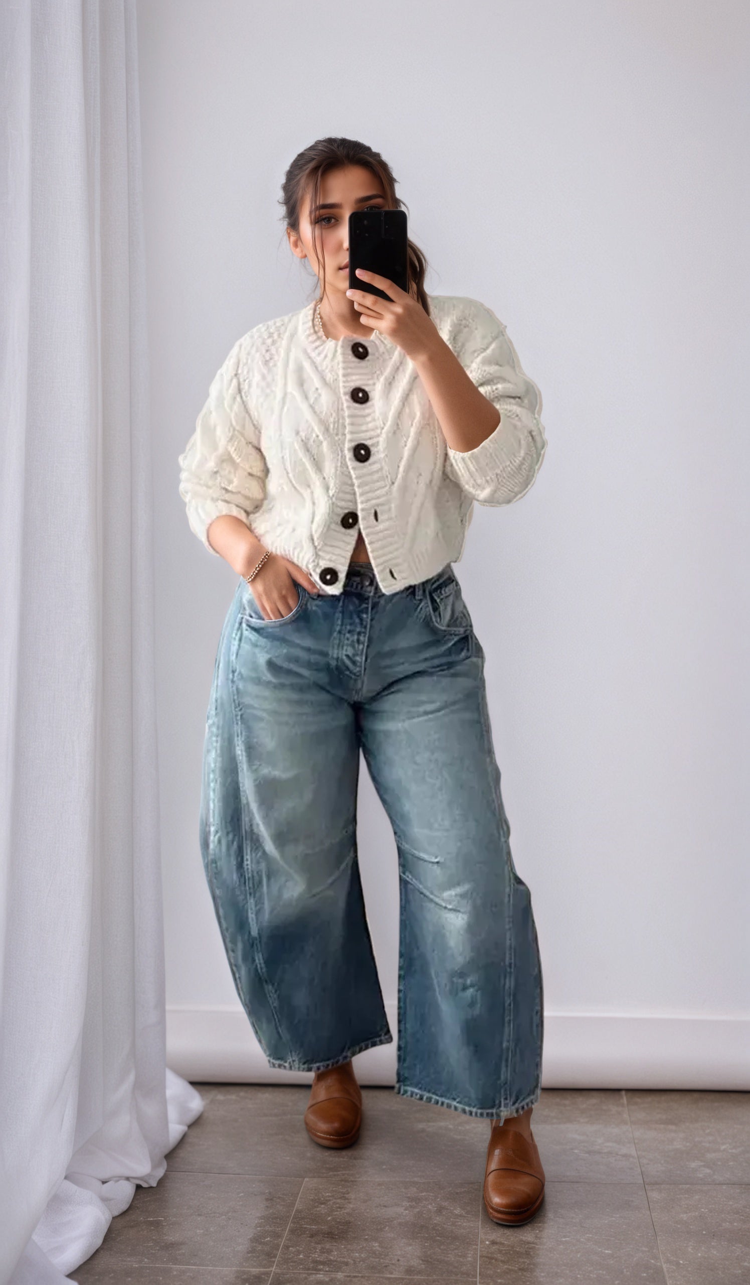 The slouchy fit is SO ON TREND but what we love about it is that it looks good on EVERYONE. You can be tall, short, curvy, or straight and look amazing!
