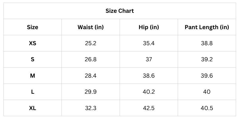 Size Chart (Inches):