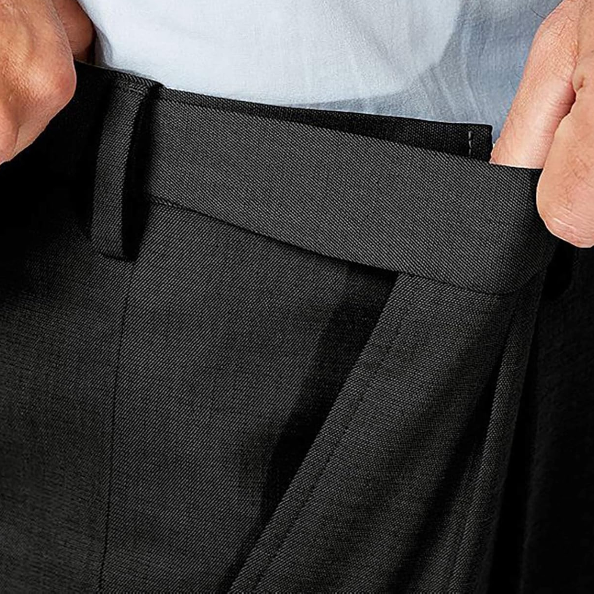 The adaptable waistband feature allows adjustment across different conditions, supporting consistency without requiring additional alterations. The straight cut ensures compatibility with formal footwear and standard office styling.