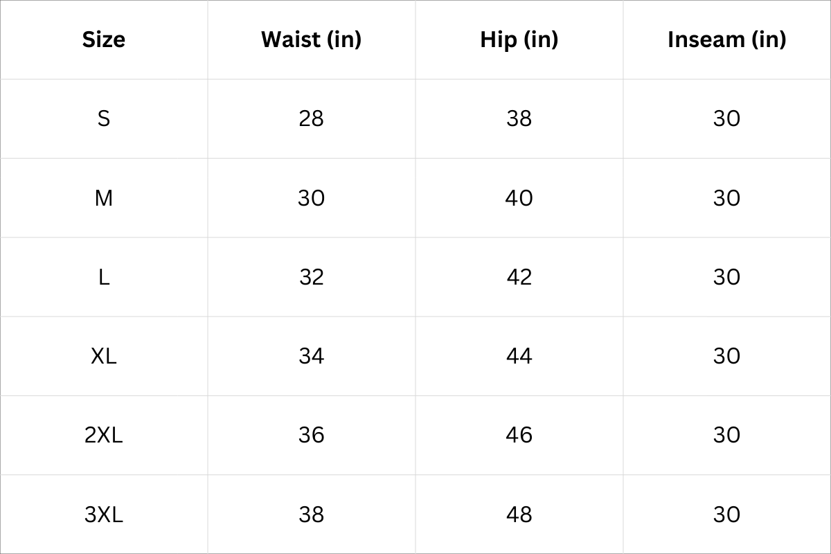 Size Chart (Inches):