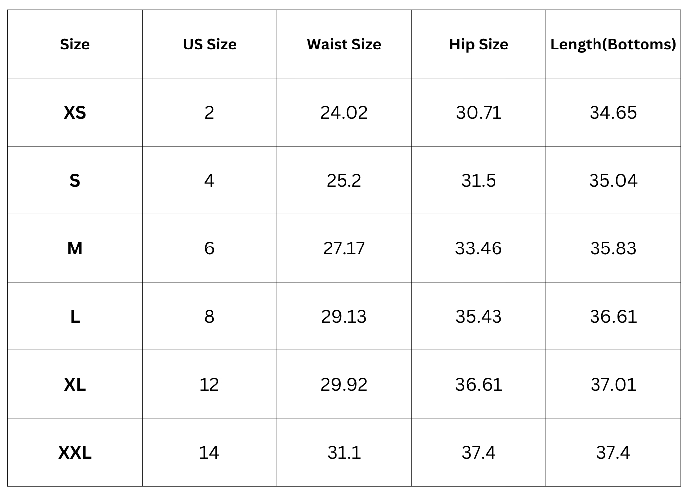 Size Chart(Inches):