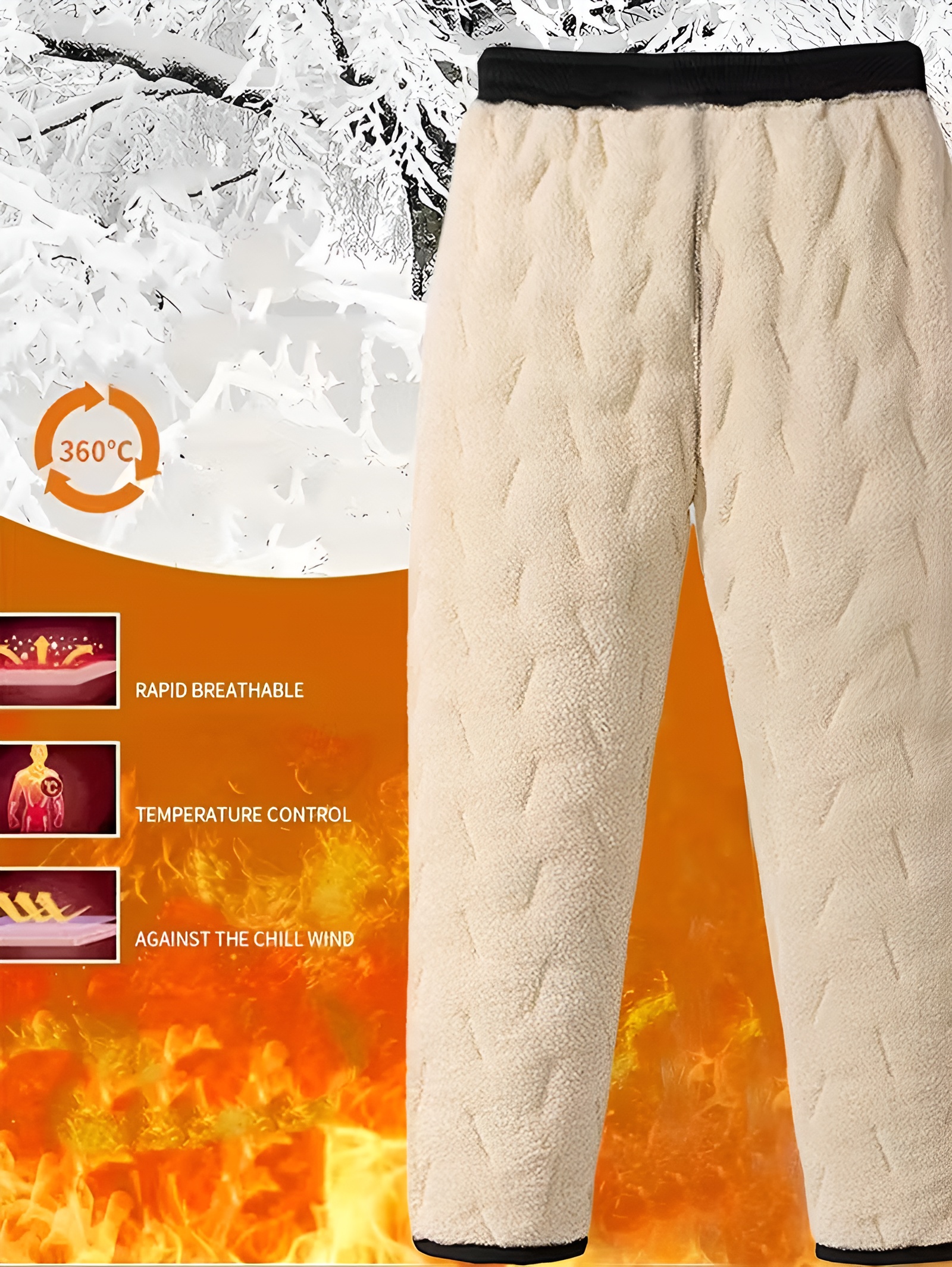 The inner surface includes plush, structured lining for added warmth. As Thick Lined Pants, they can be worn with or without added layers. This lining helps trap internal heat without causing external puffiness.