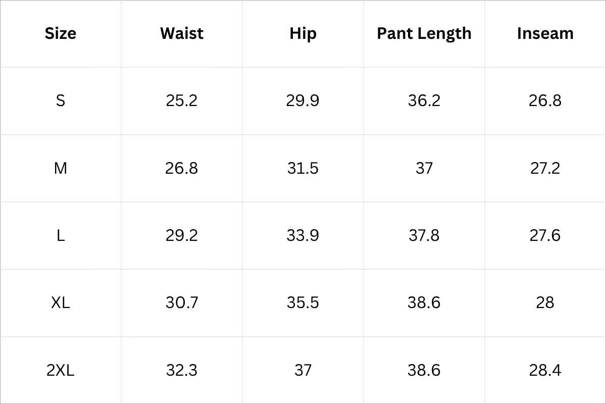 Size Chart (Inches):